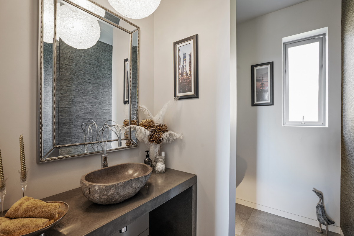 Downstairs, an expansive entertainment room provides the ultimate retreat for gatherings, ideal for parties, movie nights, or watching the rugby with friends.