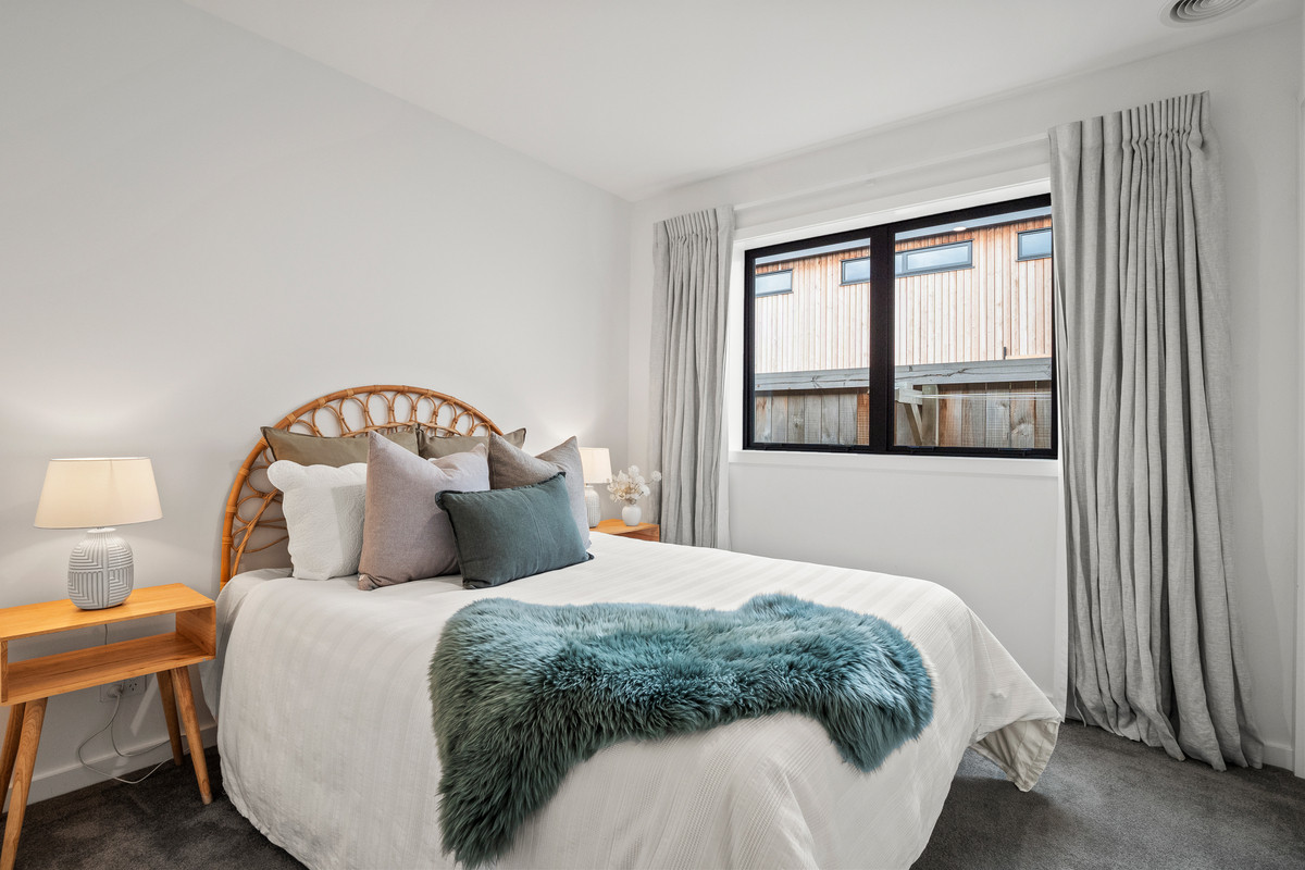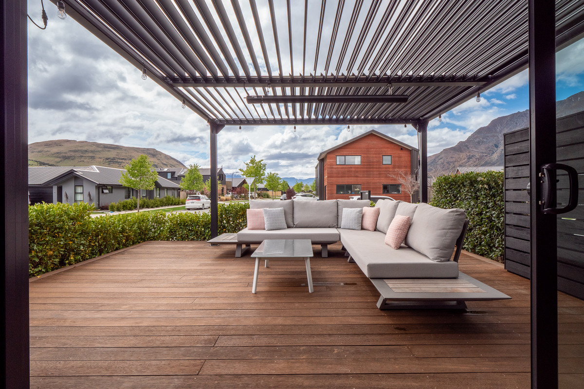 Fully tiled bathrooms with underfloor heating bring a touch of luxury, and a spa pool with Remarkable Mountain views offers the ultimate place to unwind. Two low-maintenance outdoor spaces seamlessly extend the living environment, ideal for relaxed mornings or evenings with friends.