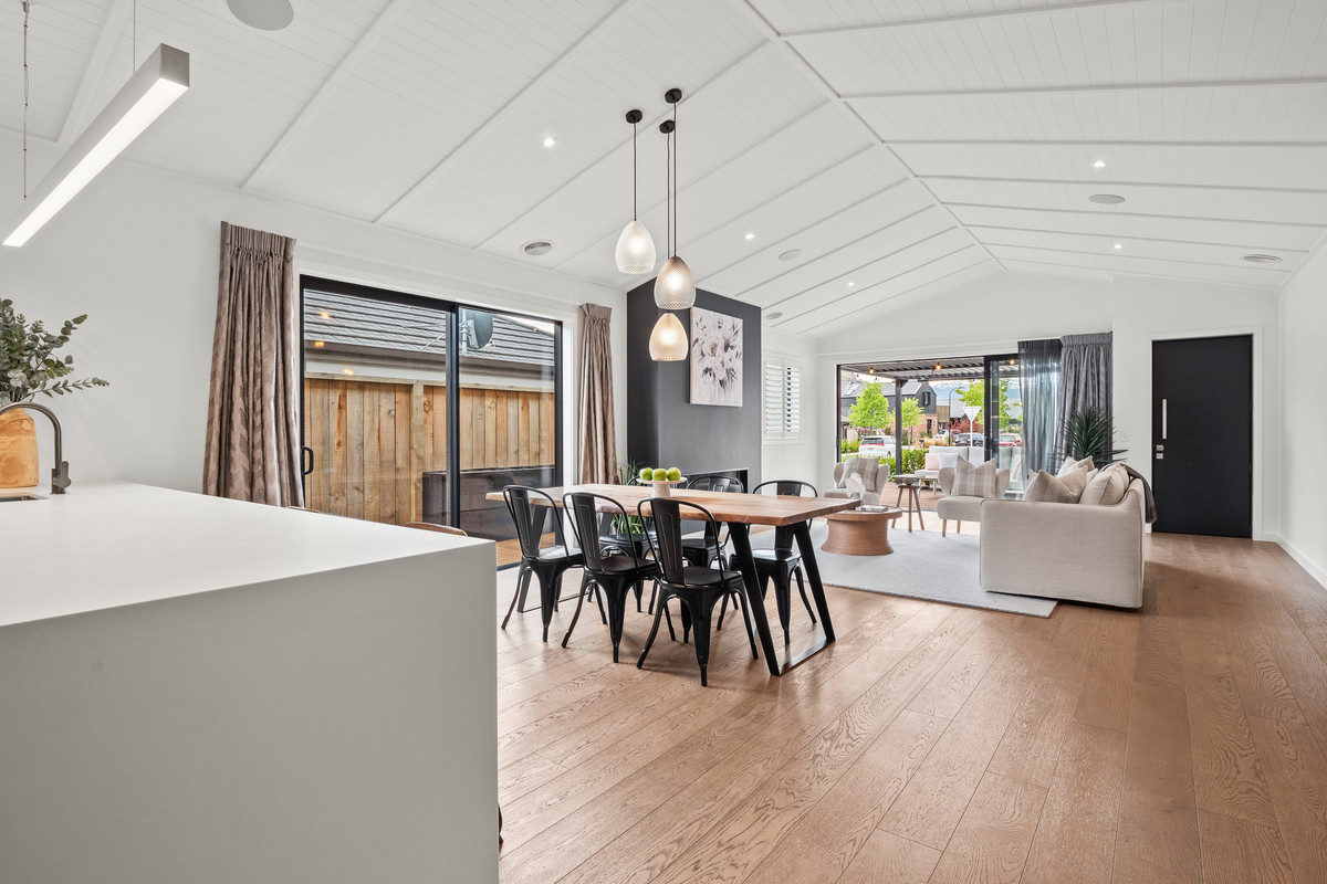 High ceilings and forte engineered timber floors create an immediate sense of refinement, while ducted heating throughout and a gas fireplace ensure year-round comfort.