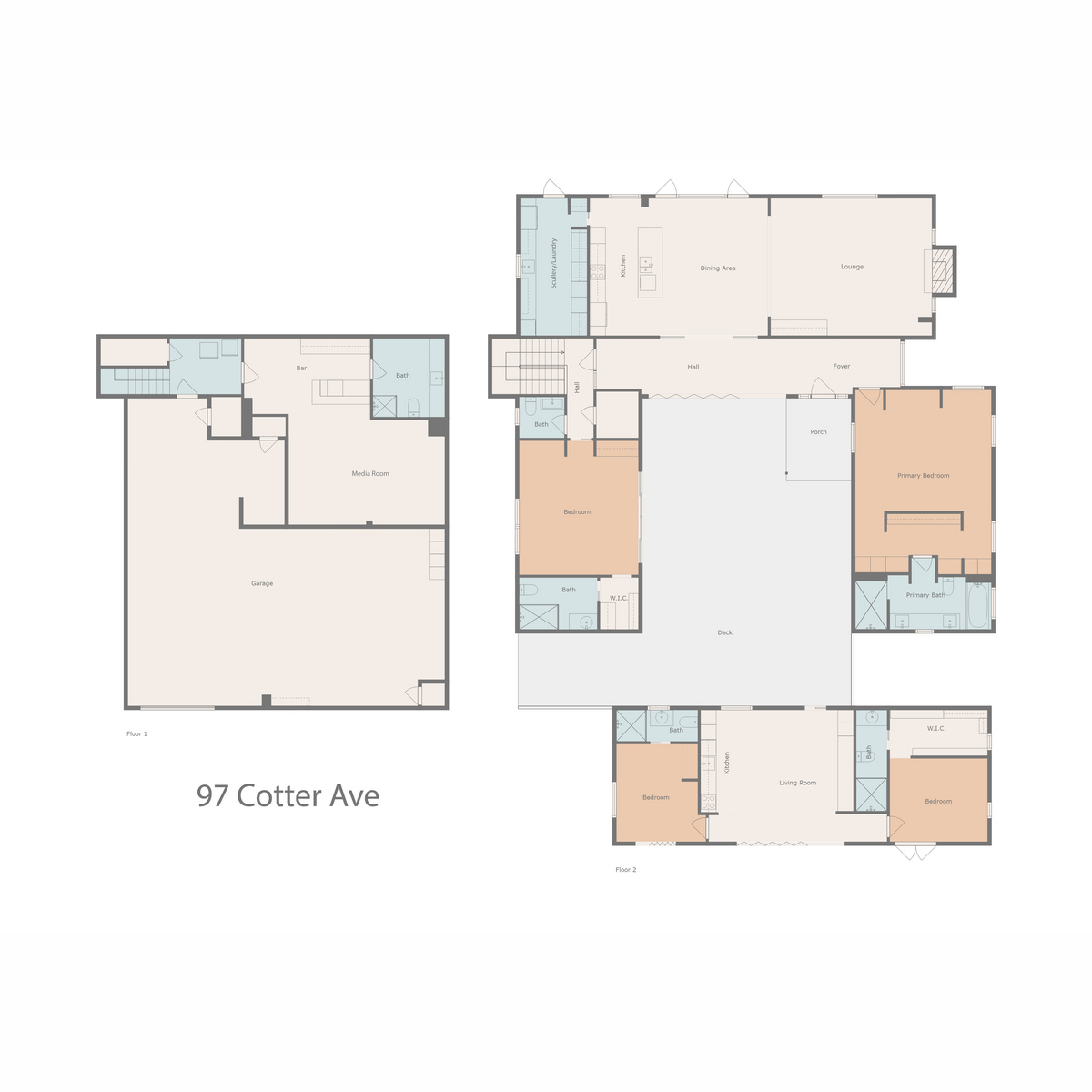 But it’s the outdoor living that truly sets this home apart. At its heart lies an expansive, sun-filled partially covered courtyard framed by wide bi-fold doors and generous decking. Multiple spaces for lounging, dining, and entertaining capture both morning and evening sun, with the mountains as a breathtaking backdrop. Designed for year-round enjoyment, this private courtyard creates a central hub between the main home and the fully self-contained two-bedroom, two-ensuite guest cottage, ideal for hosting friends and family, or offering potential for home and income.